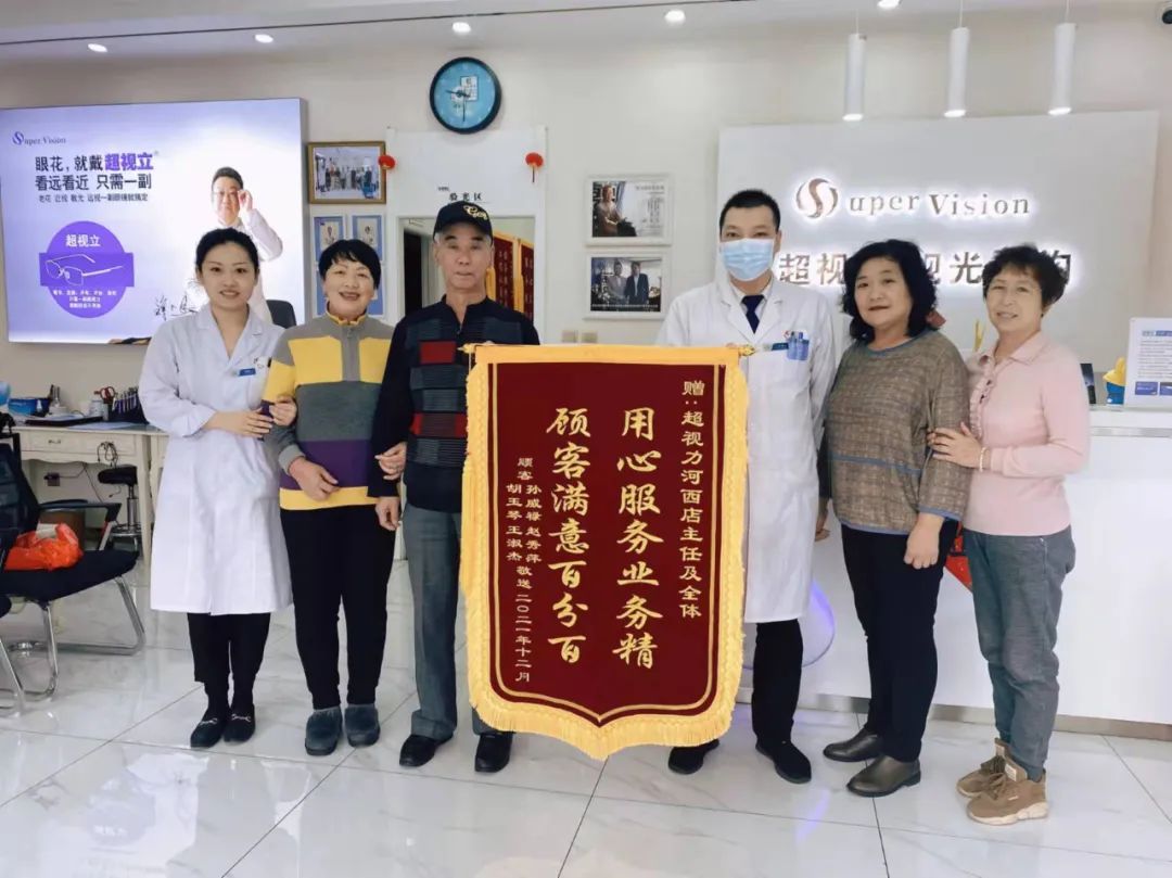 不但口碑相传超视立的品质,孙威禄叔叔、王淑杰阿姨还特意约上家人朋友送来两面锦旗,诚挚表达对河西店各位验光老师及全体工作人员的感谢!