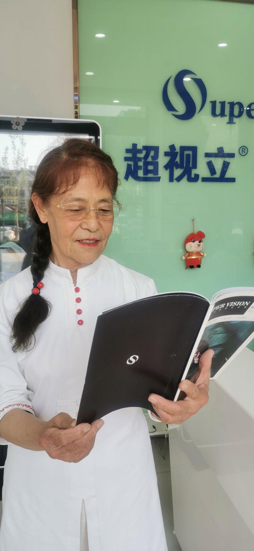 张培英阿姨,21年8月由高花花老师验光配镜,四医院护士长退休反聘,远视散光老花,没配镜时给病人输液扎针看不清楚,找不准位置,干着急看不清,看液体字也不清楚,工作非常不方便,自从戴上超视立,扎针一下子就看见了,阿姨说知道超视立晚了,早配几年更好!阿姨自己受益,走哪里都宣传超视立,身边的朋友好多人都配了超视立!...[详情]